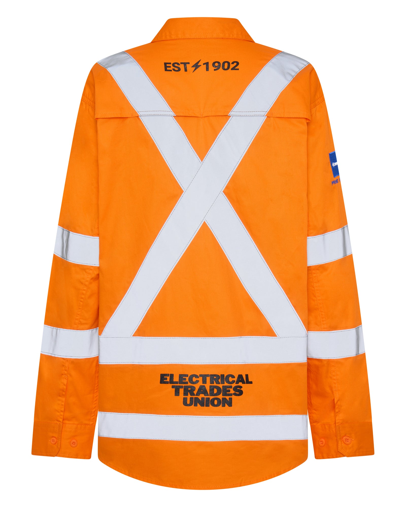 $73.00ETU Men's Hi Vis X Orange Back Long-Sleeved Shirt with ETU logo. 100% Australian made!